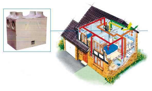 The result of Heat Recovery Ventilation is an improved internal environment with constant clean, fresh air. The elimination of condensation prevents costly damage to the building�s fabric and its decorations. Low humidity levels result in the death of the house dust mite, a common cause of asthma and other allergies.